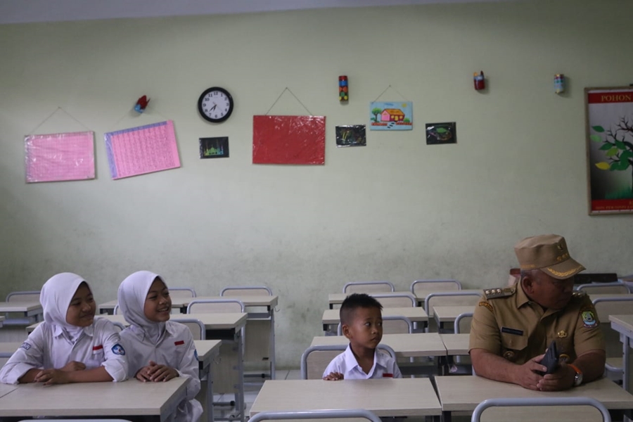 BEKASI – Walikota Bekasi Rahmat Effendi melakukan sidak ke SDN Pekayon III. Sidak tersebut lantaran adanya informasi bahwa SDN tersebut tidak memiliki bangku dan meja selama 2 tahun sehingga proses belajar dilakukan dilantai.