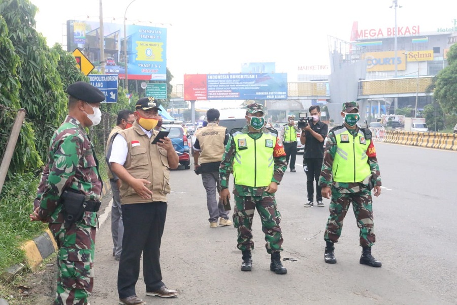 BEKASI – Walikota Bekasi Rahmat Effendi meninjau 6 titik lokasi pemberlakuan PSBB (Pembatasan Sosial Berskala Besar), pada Rabu 15 April.