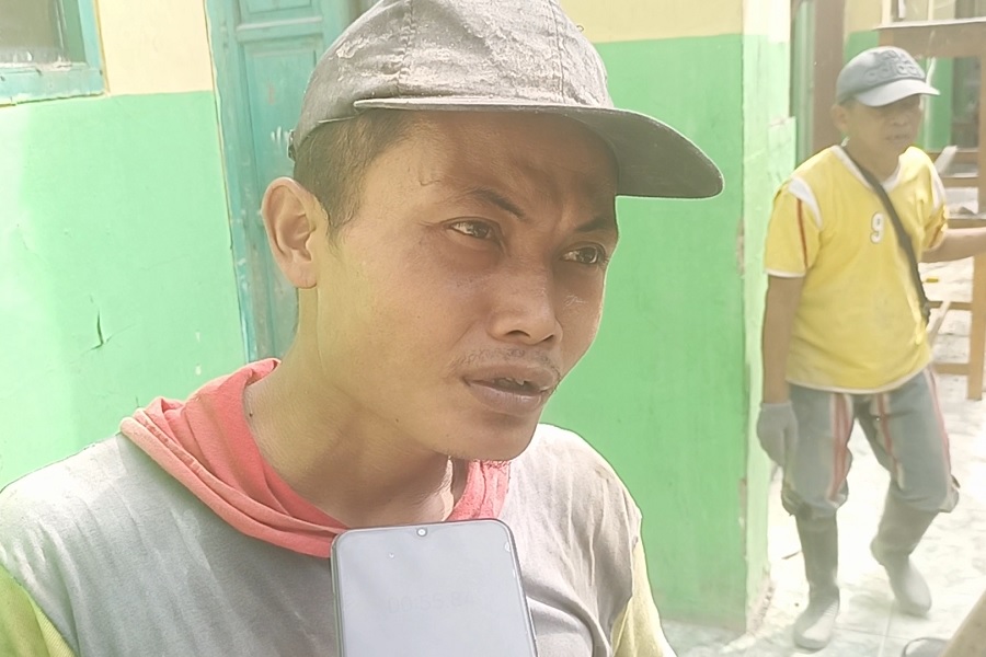 “Kami aduk beton pakai pacul,” kata pekerja.