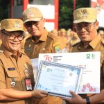 BEKASI – Pj Walikota Bekasi Gani Muhamad berikan piagam penghargaan dan piala kejuaraan kepada anak berprestasi, di Halaman Kantor Pemerintah Kota Bekasi, pada Senin (19/8/2024). Pertama, penyerahan Piagam dan Piala